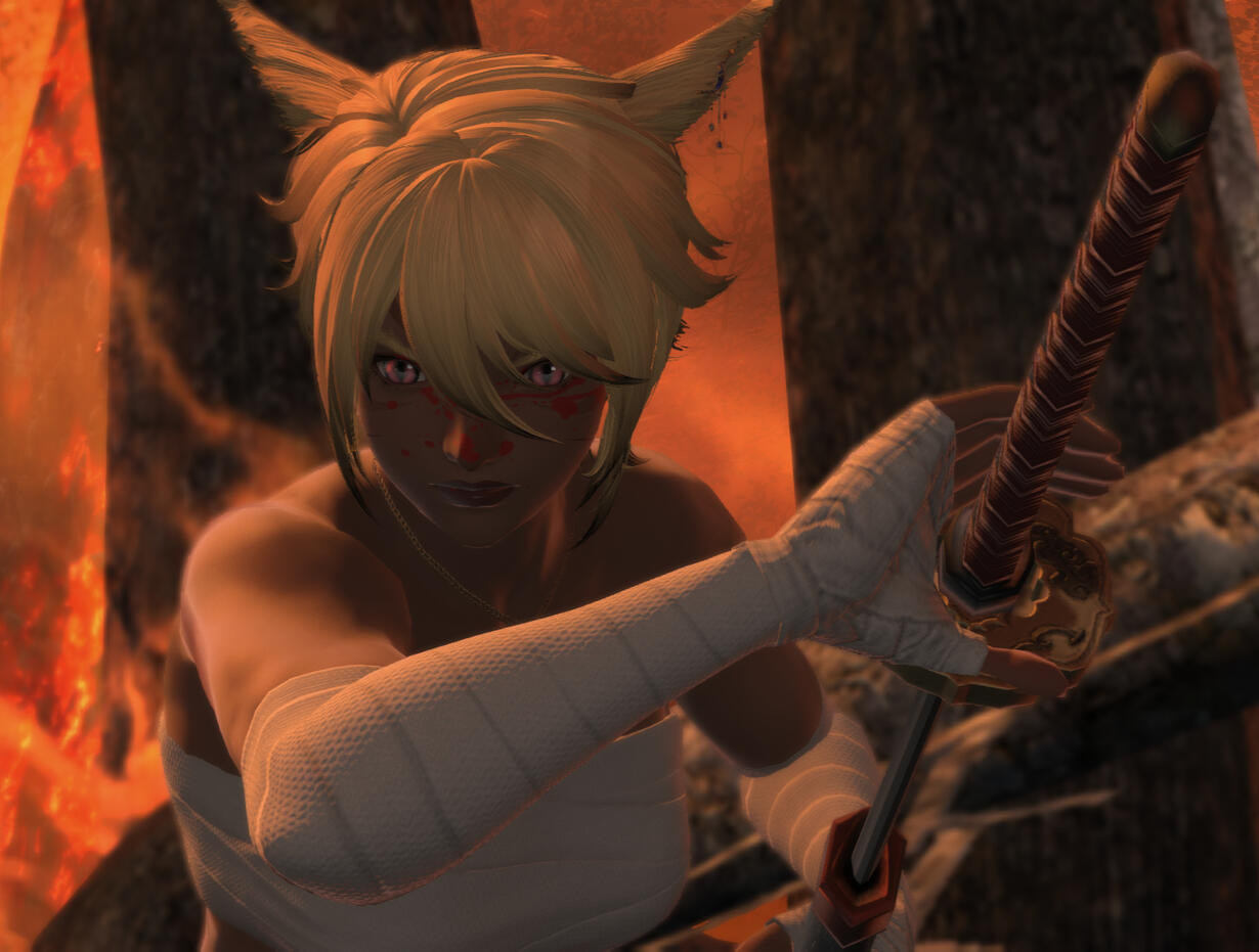 Naja does not remember anything before Dalamud fell. She also doesn't think it's all that important. If she had people who cared, why hadn't they found her yet? Where was the family that should've walked the streets of Ul'dah shouting her name? Why had no one found her while she scrabbled like an insect in the rubble, eating weeds, dirt and anything else she could find and break between her very strong teeth.
